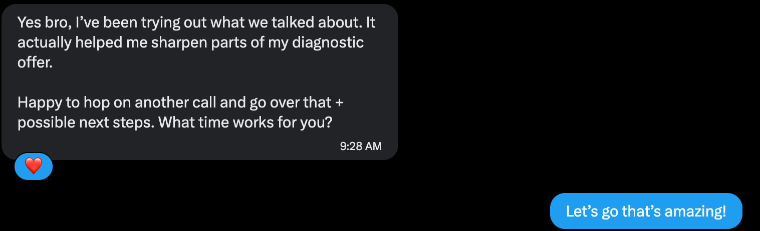 I will find the root of your problem. Whether that’s light, nutrition, toxins, breathing…And you’ll leave with 3 habit changes that will transform your health and energy.I’ve worked with 20+ people. With personalized advice you can shortcut 100s of hours with the wrong advice... By getting to the root of the problem.Once people make the right changes, they can feel massive changes in just days… And create strong habits that feel good (and easily last) for life.